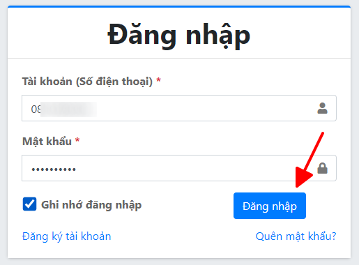 Sử dụng tài khoản và mật khẩu đăng ký tại bước 1 để đăng nhập vào hệ thống.